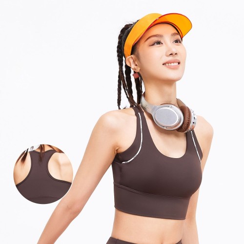 Alphabet Line Feel Fixed Integrated High Support Shock Absorbing Yoga Sports Bra