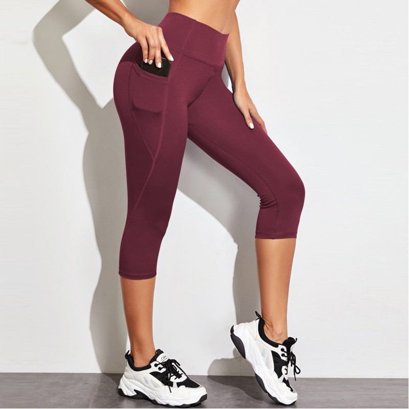 Women Slim High Waisted Side Pocket Cropped Yoga Pants